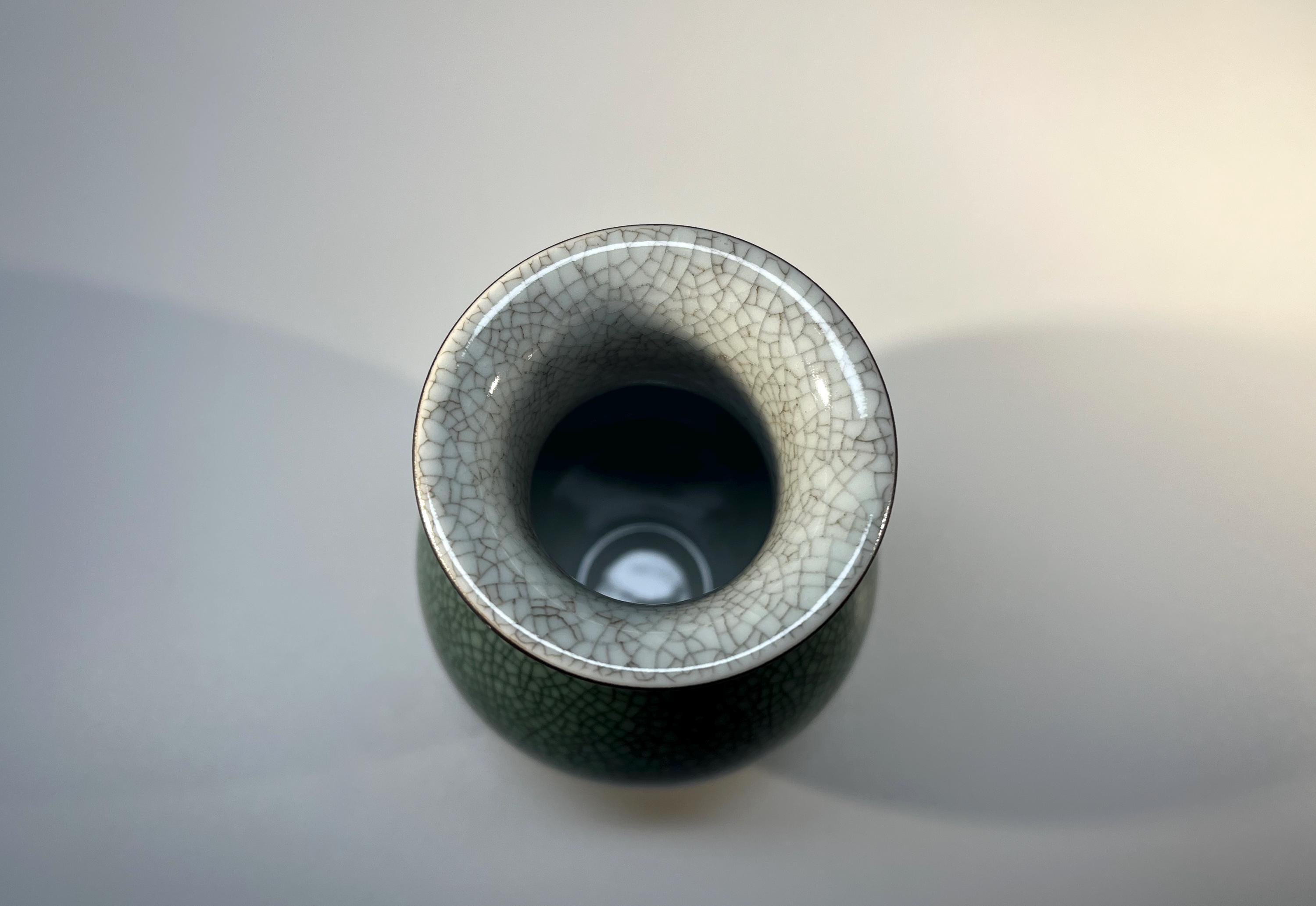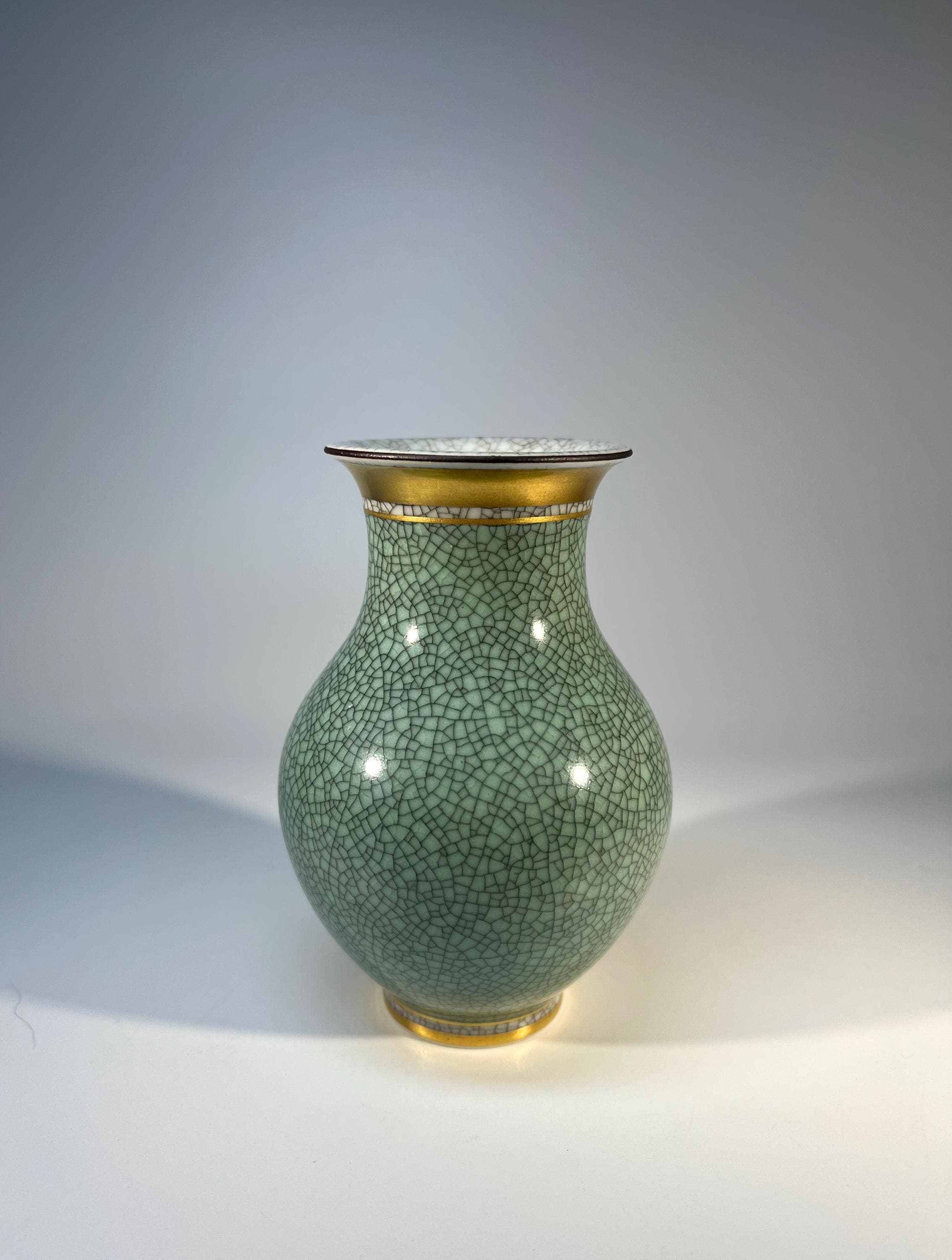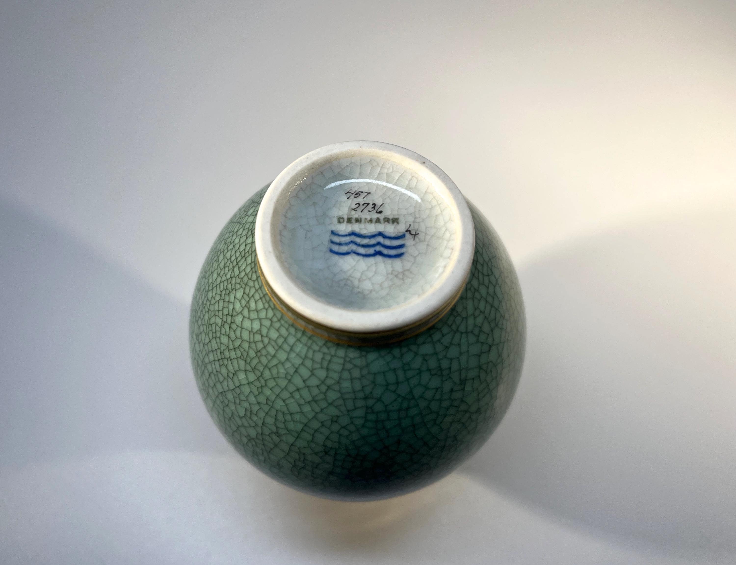 Royal Copenhagen porcelain gilded pale green and grey crackle glazed petit baluster vase