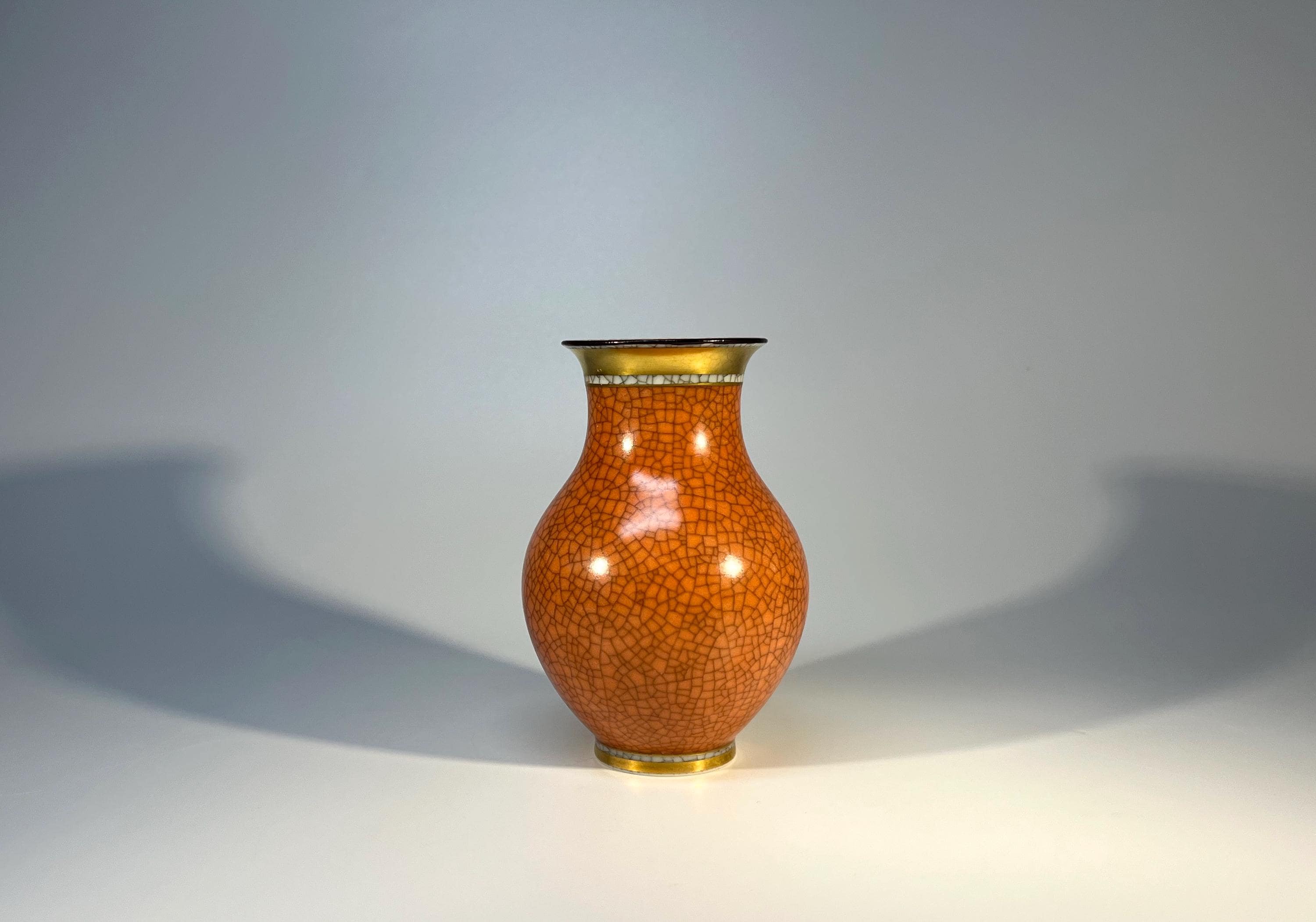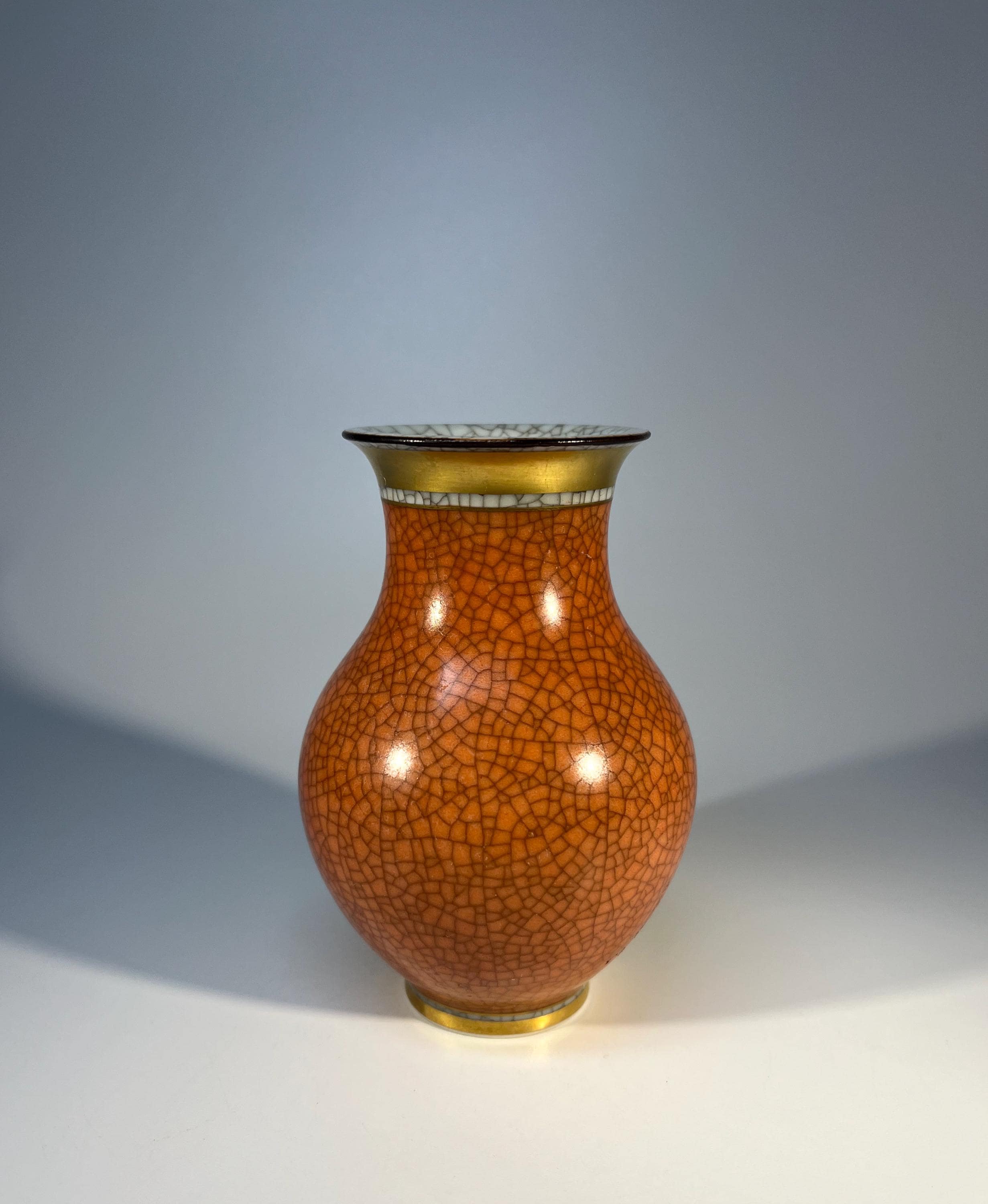 Royal Copenhagen porcelain gilded terracotta and grey crackle glazed petit baluster vase