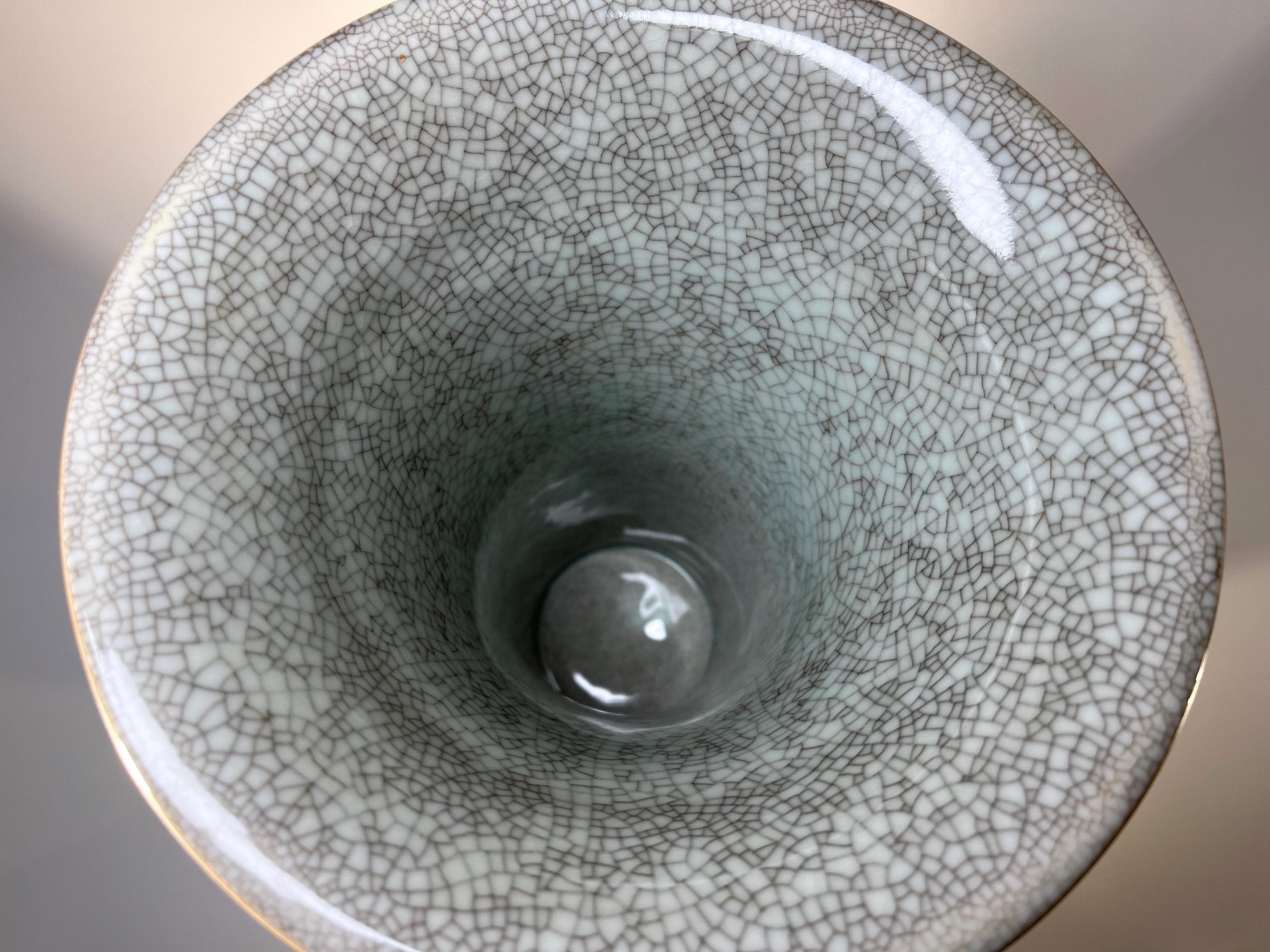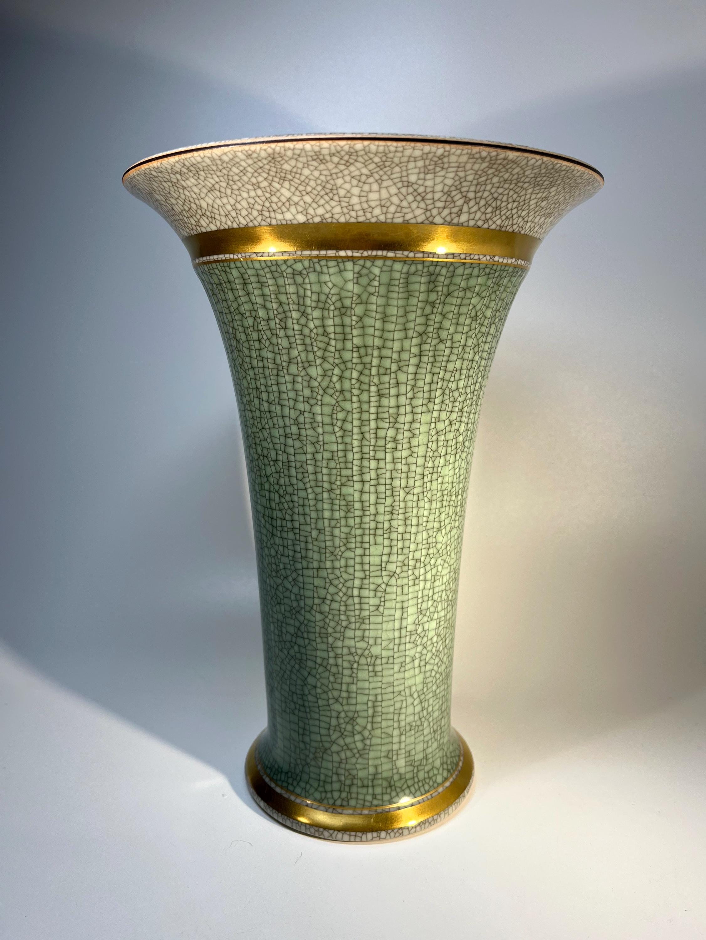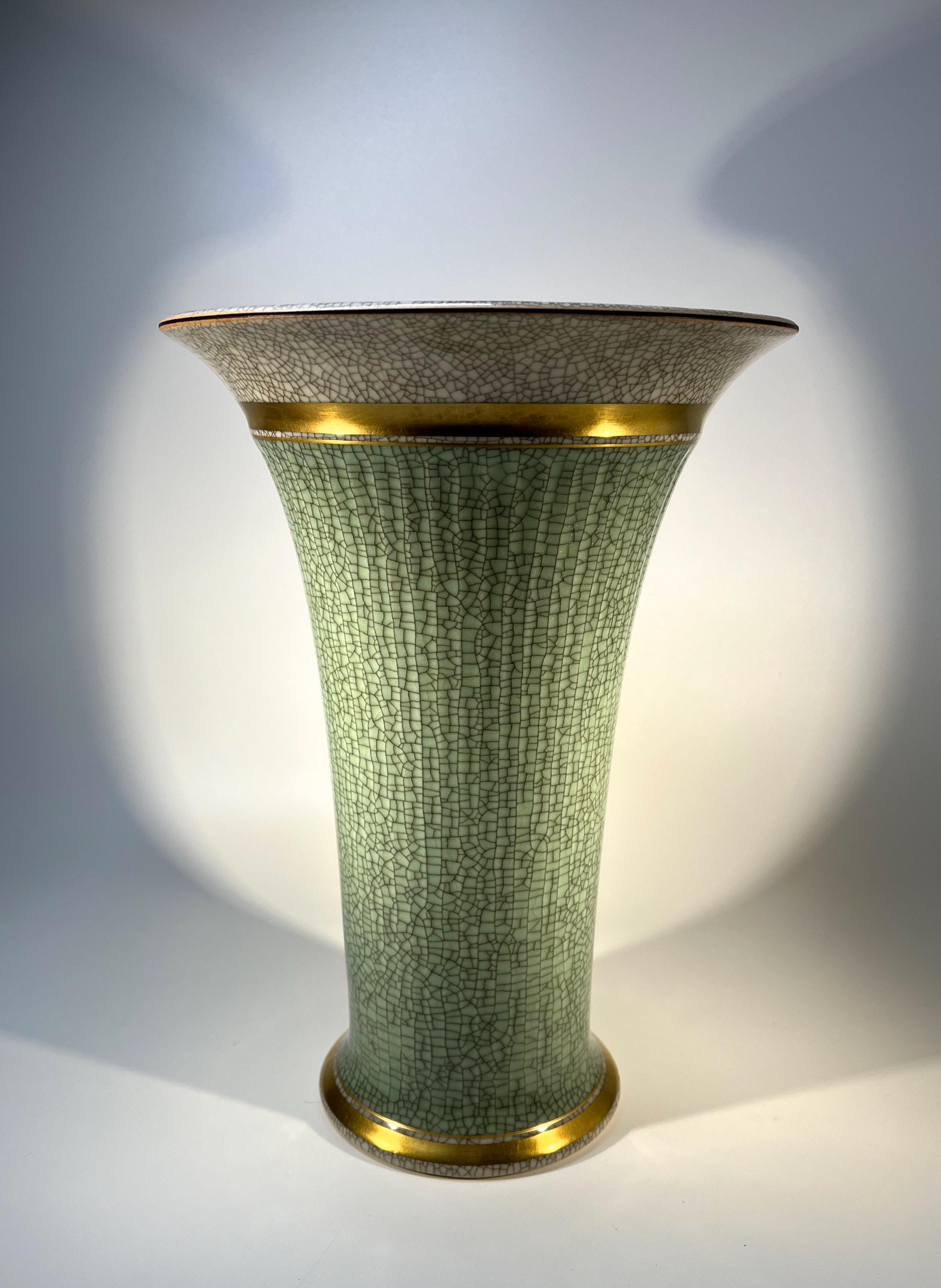 Statuesque form with a first rate pale green and grey crackle glaze.