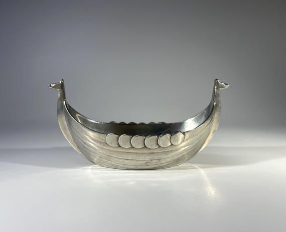 Antique Just Andersen, Denmark. Pewter Viking Ship Salt #1109